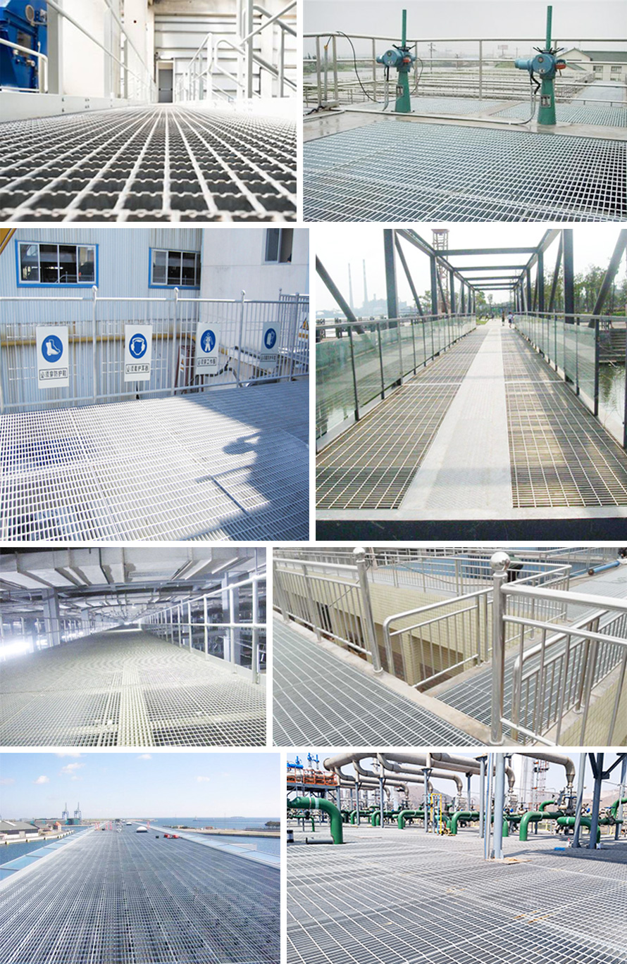主要用作工業(yè)平臺,鍋爐平臺,環(huán)保設(shè)備,梯踏板,扶欄,通道地板,鐵路橋側(cè)道,高空塔架平臺,排水溝蓋,井蓋,道路隔柵,立體停車場,機(jī)關(guān)、學(xué)校、工廠、企事業(yè)、運(yùn)動場、也可用作民宅的外窗,陽臺護(hù)欄,高速公路、鐵路的護(hù)欄等。